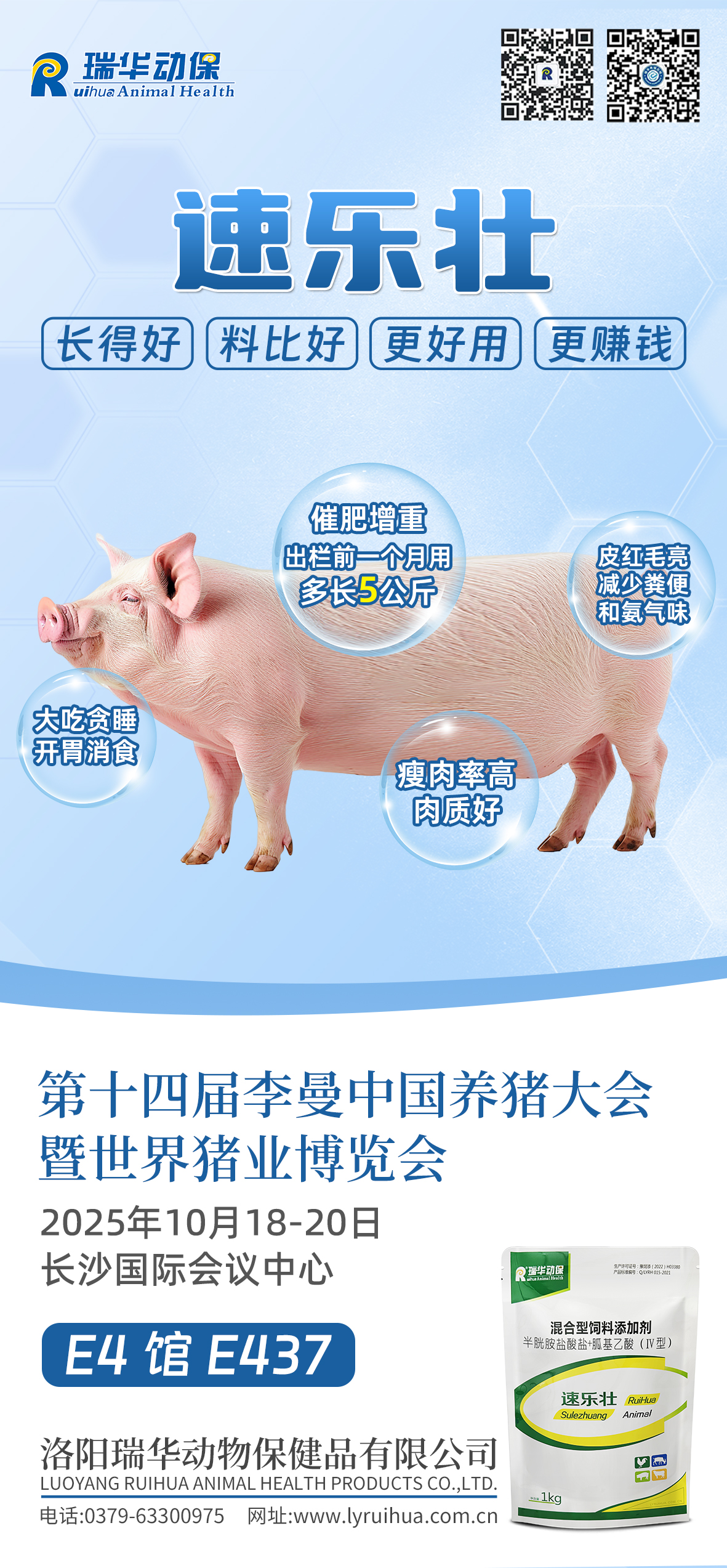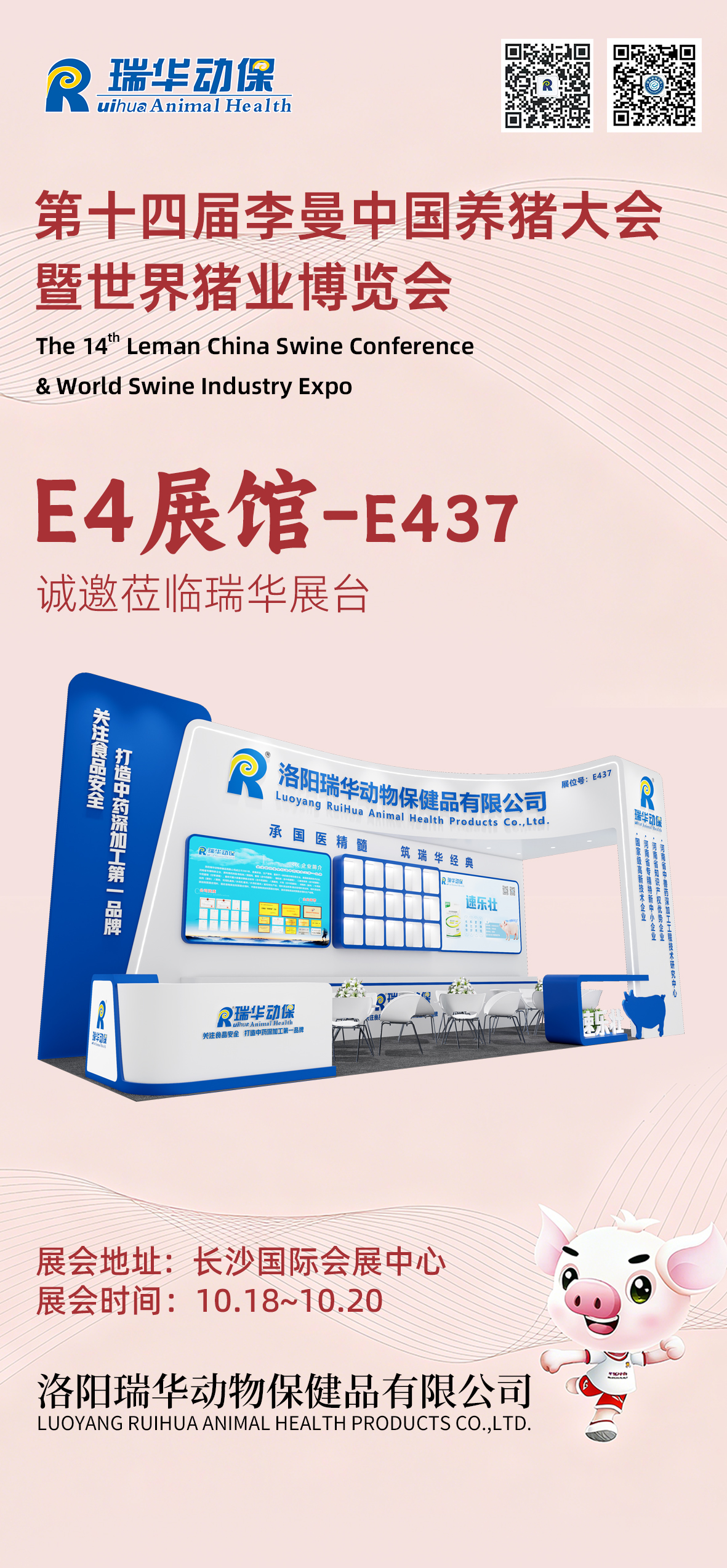 2025 年10 月18-20日,畜牧行業翹首以盼的第十四屆李曼中國養豬大會暨世界豬業博覽會將在長沙國際會議中心盛大開幕!洛陽瑞華動保盛裝出席,屆時將與行業精英共同,共探行業前沿趨勢,共商合作發展新篇。誠摯地邀請您蒞臨我們的展位!