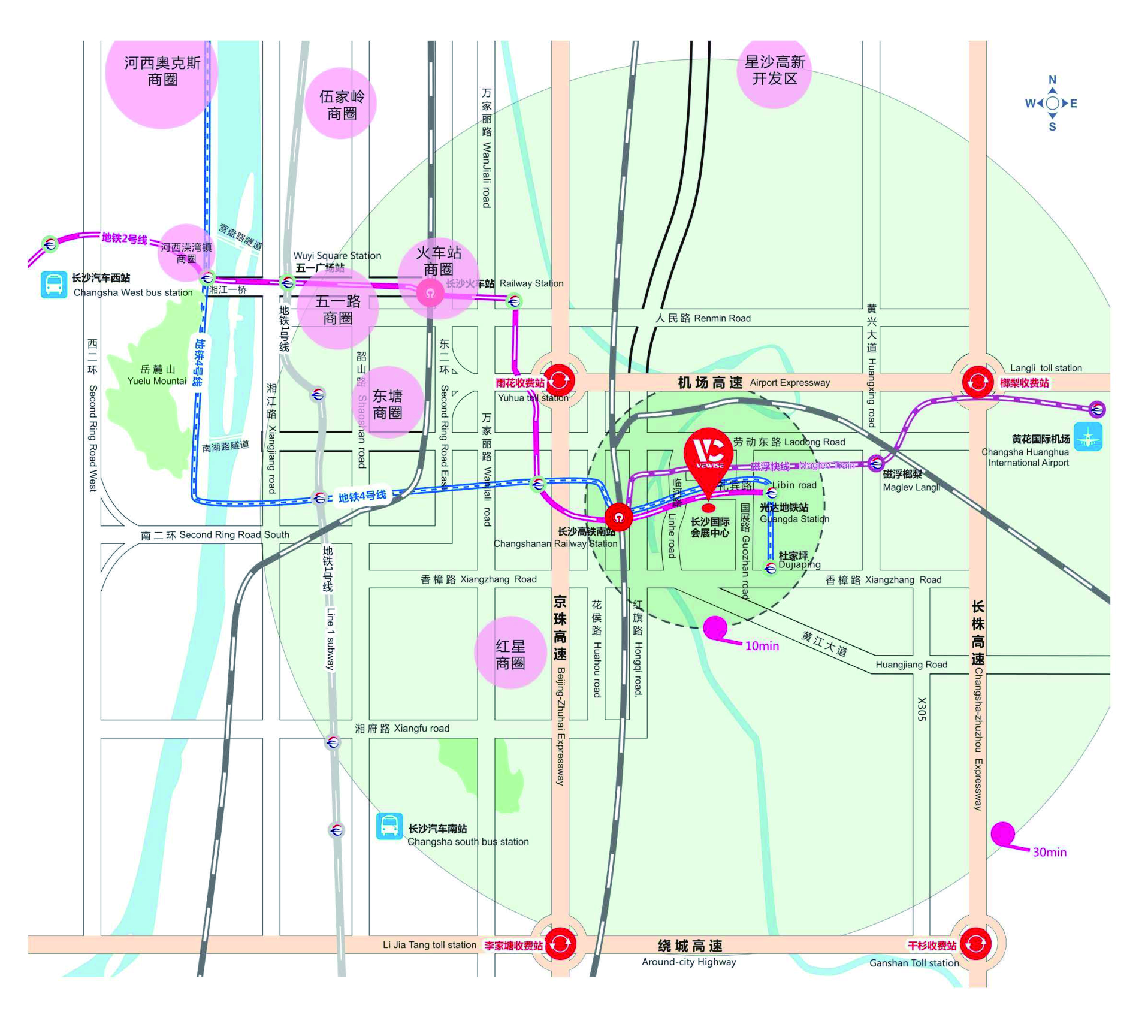 ②長沙火車南站地鐵站乘地鐵2號線至光達站下車(僅1站),步行約400米即可到達長沙國際會展中心。